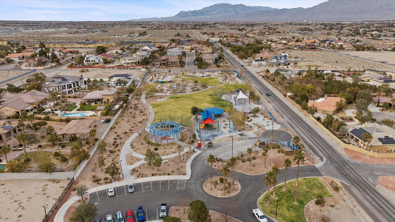 Paseos Park spans over 12 acres and features a splash pad for the kiddos in the summer, trails that connect to the greater Summerlin Trail System, plus large, open play areas perfect for birthday parties and picnics.